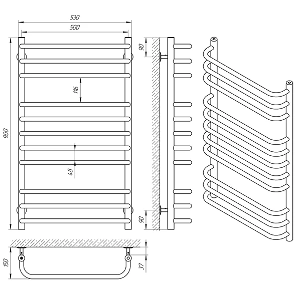 Рушникосушарка Laris Стандарт П9 500 x 900