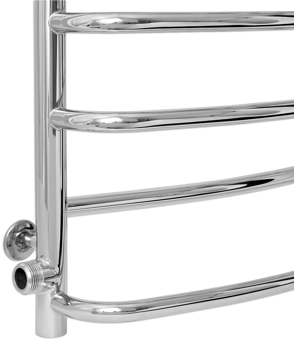 Водяний рушникосушка Laris Евромикс П10 виготовлений з нержавіючої сталі AISI304, що забезпечує високу стійкість до корозії та довговічність в умовах підвищеної вологості. Модель має бічне підключення з зовнішньою різьбою 1" та міжосьовою відстанню 800 мм.