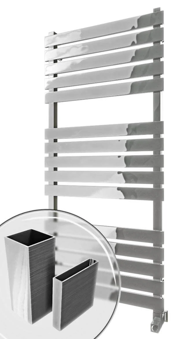 Водяна рушникосушка Mario Бетто 1200 х 560, виготовлена з високоякісної харчової нержавіючої сталі AISI 304, призначена для ефективного сушіння рушників та обігріву ванних кімнат. Матеріал виробу забезпечує високу стійкість до корозії та окислення в агресивному вологому середовищі, що гарантує тривалий термін експлуатації.