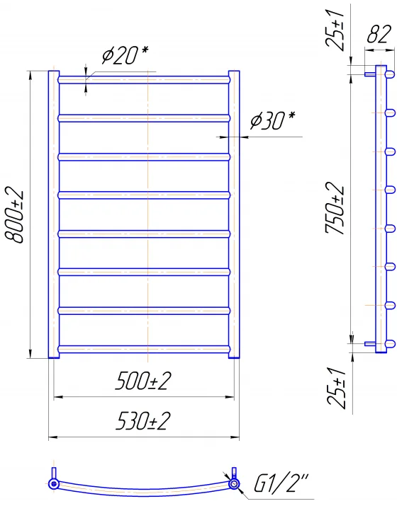 Водяний полотенцесушитель Mario Класік 800 х 500 виготовлений з нержавіючої сталі AISI 304, що забезпечує його високу стійкість до корозії та довговічність. Модель має висоту 800 мм та ширину 530 мм, з міжосьовою відстанню 500 мм для підключення. Він призначений для підключення до систем автономного або центрального опалення через нижнє підключення з діаметром 1/2 дюйма.