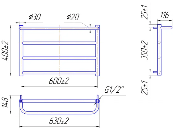 - Висока надійність: Використання нержавіючої сталі AISI 304 та багаторазова перевірка тиском до 22 атмосфер гарантують довговічність та безпечну експлуатацію рушникосушки при робочому тиску до 15 бар.
