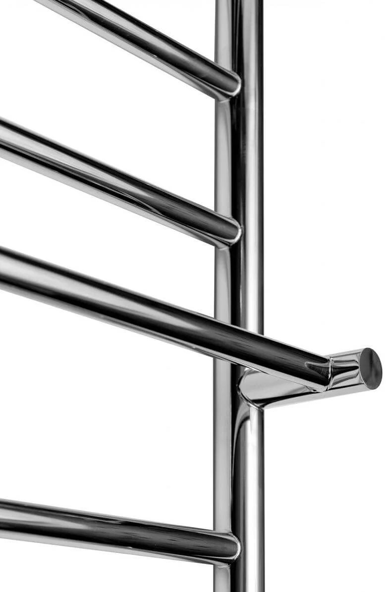 Поверхня виробу має дзеркальне полірування, досягнуте завдяки високоточній електроплазмовій обробці, що надає йому естетичного вигляду та полегшує догляд. Рушникосушка забезпечує теплову віддачу 360 Вт, ефективно обігріваючи приміщення та швидко висушуючи рушники. Робочий тиск становить 10 бар, а випробувальний – 25 бар, що підтверджує її надійність у системах водопостачання. Підключення здійснюється знизу за допомогою приєднувального розміру 1/2 дюйма, а міжосьова відстань складає 500 мм.