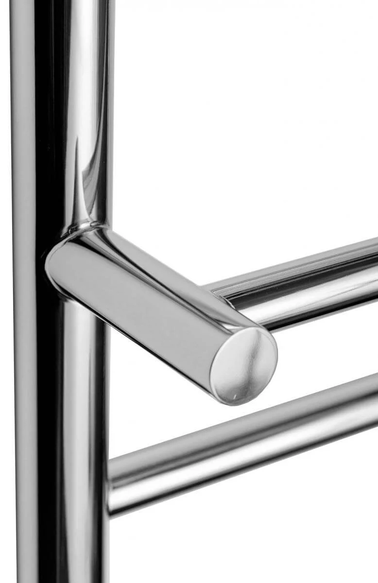 Водяна рушникосушка Navin Класік з полицею 500 х 800 виготовлена з високоякісної харчової нержавіючої сталі марки AISI 304, яка відома своєю стійкістю до подряпин, механічних пошкоджень та високою антикорозійною стійкістю. Товщина стінки рушникосушки становить 2 мм, що гарантує її міцність та довговічність.