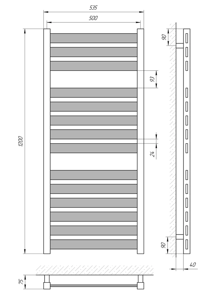 Конструкція рушникосушки включає стійки квадратного профілю 35х35 мм з товщиною стінки 2 мм та перемички прямокутного профілю 50х10 мм з товщиною 1,5 мм. Такий дизайн не тільки надає виробу сучасного вигляду, але й забезпечує ефективну тепловіддачу 488 Вт. Підключення здійснюється через внутрішню різьбу 1/2", з міжосьовою відстанню 500 мм та нижнім способом підключення.
