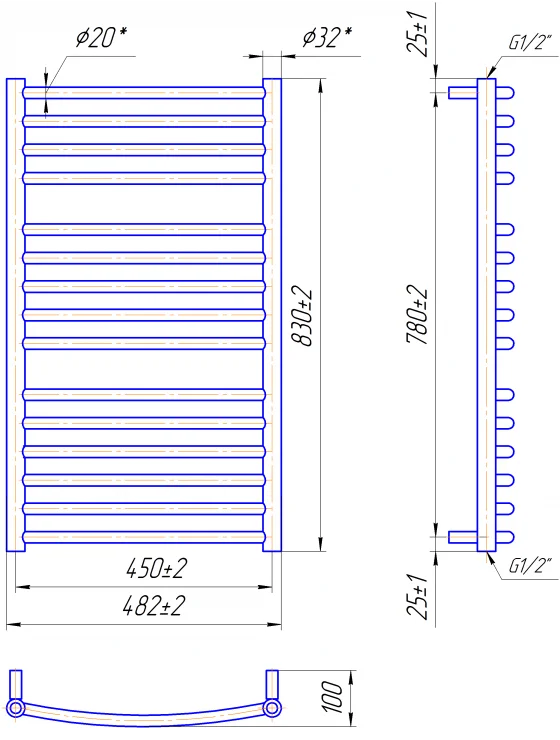 - Компактний дизайн: Оптимальні габарити (830 х 482 мм) дозволяють розмістити рушникосушку навіть у невеликих ванних кімнатах.