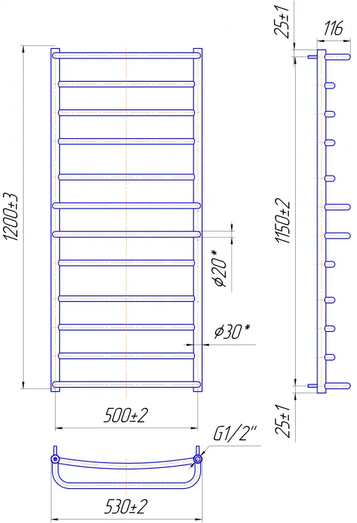 Інформація про продукт "Рушникосушка Mario Люкс 1200 х 500 (нерж)"