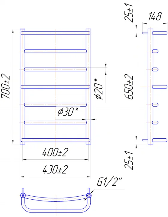 Інформація про продукт "Рушникосушка Mario Люкс 700 х 400 (нерж)"