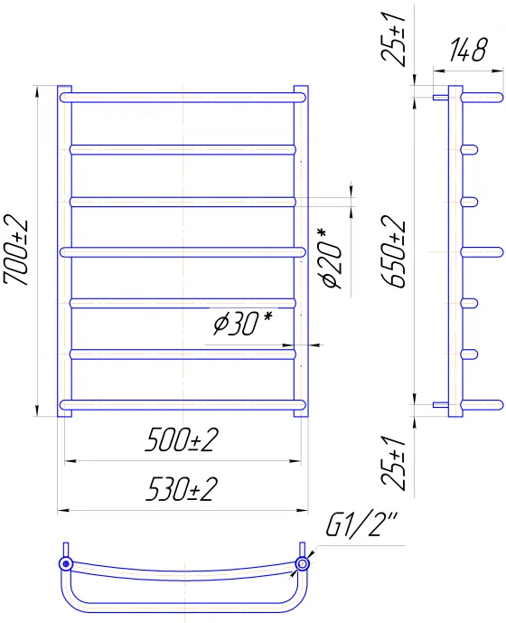 Інформація про продукт "Рушникосушка Mario Люкс 700 х 500 (нерж)"