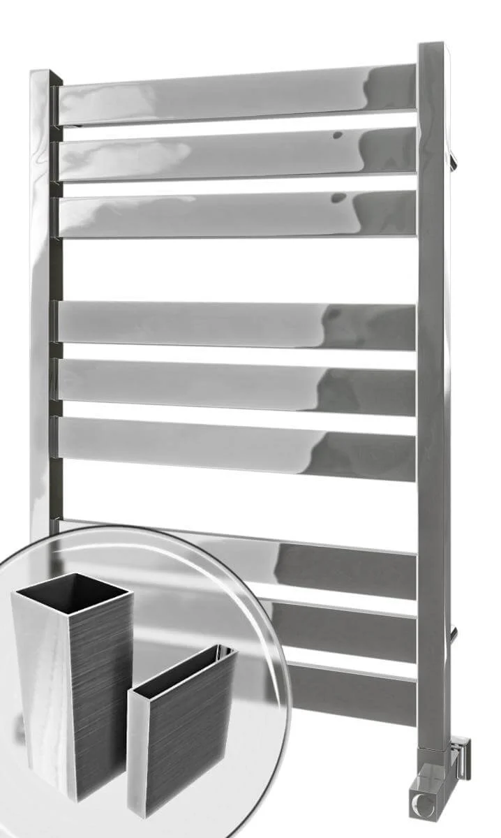 Водяна рушникосушка Mario Санті 800 х 530, виготовлена з харчової нержавіючої сталі AISI 304, забезпечує ефективне сушіння рушників та обігрів ванної кімнати. Цей матеріал гарантує високу стійкість до окислення та корозії в агресивному середовищі, що є типовим для систем опалення.