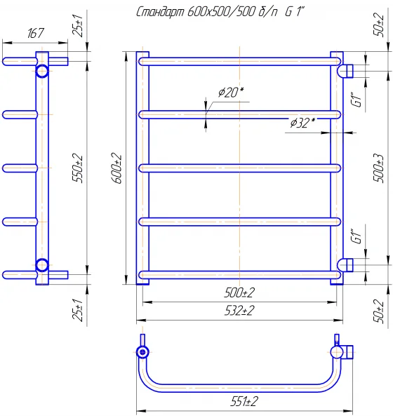 Інформація про продукт "Рушникосушка Mario Стандарт 600 х 550 Б/П 1 (нерж)"