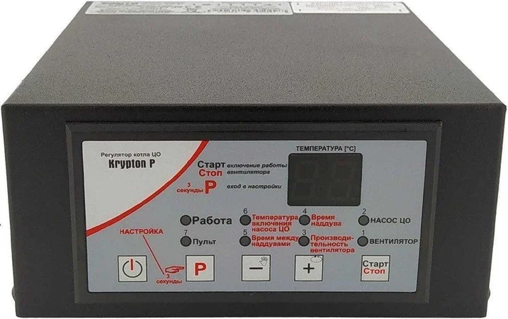Посилена версія мікропроцесорного контролера Prond Krypton P 0S WZ розрахована на керування двома нагнітальними вентиляторами та циркуляційним насосом підвищеної потужності в системах з твердопаливними котлами. Металевий корпус приладу адаптований для безпосереднього монтажу на котел і забезпечує захист від високих температур. Живлення відбувається від мережі 220 В, а максимальна комутована потужність навантажень сягає 1550 Вт.