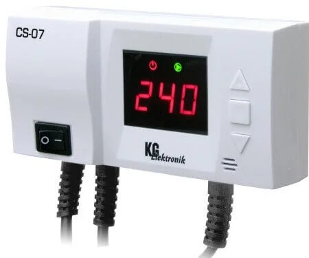Регулятор KG Elektronik CS-07 автоматично керує циркуляційним насосом системи опалення на основі температури теплоносія. Його основне завдання — вмикати насос лише при досягненні заданої температури та вимикати при її зниженні, запобігаючи непотрібній роботі.