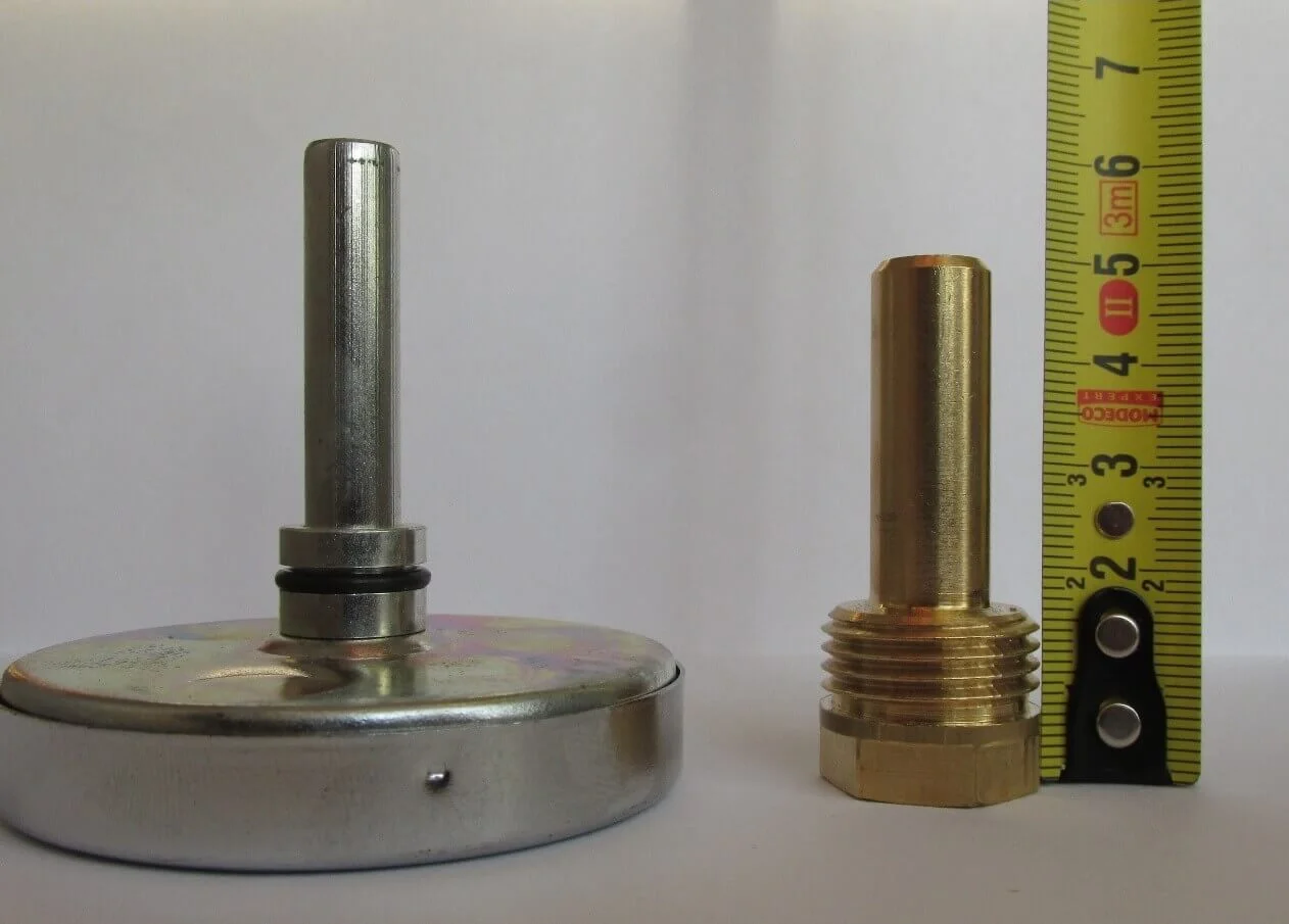 Біметалевий термометр оснащений погружною гільзою для прямого контакту з теплоносієм у трубопроводах систем опалення та гарячого водопостачання. Конструкція забезпечує вимірювання температури в діапазоні від 0 до 120 °C з класом точності 2,0, що відповідає вимогам для побутових та комерційних інсталяцій.