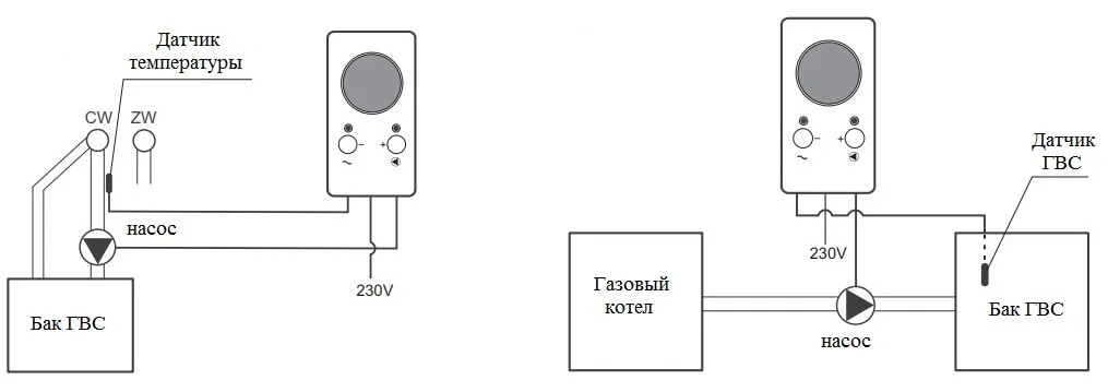 - Широкий діапазон регулювання: температура включення/виключення налаштовується в межах від 20° до 90°C.