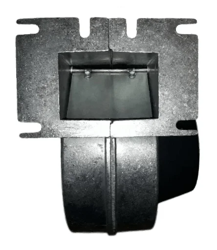 Вентилятор NWS-100/P виконаний з двох алюмінієвих частин, що утворюють корпус, зовні якого розміщено електродвигун у захисному пластиковому кожусі. Алюмінієва турбина з захистом від механічних впливів закріплена на валу двигуна. Конструкція включає фланець для кріплення до котла та регулювальну заслінку на вході для контролю об'єму повітря, що подається.