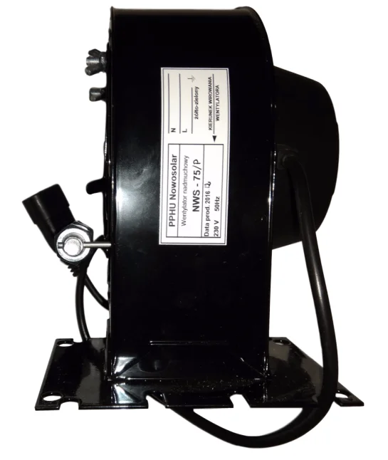 Вентилятор Nowosolar NWS-75/P призначений для примусового піддуву повітря в камеру згоряння твердопаливних котлів потужністю до 30 кВт. Його використання дозволяє швидко досягати заданого температурного режиму та підвищує ефективність горіння. Пристрій сумісний з котлами різного виробництва та польськими блоками управління.
