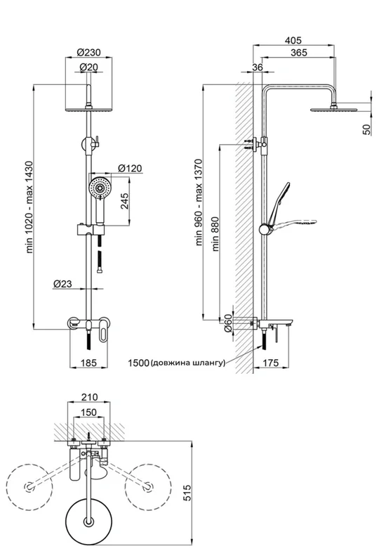 - Багатофункціональність: Можливість використання верхнього душу діаметром 220 мм, ручного душу та виливу довжиною 137 мм забезпечує комплексне рішення для щоденних гігієнічних процедур.