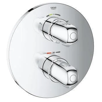 Змішувач оснащений термостатом, що дозволяє підтримувати задану температуру води, та вбудованим перемикачем на 2 положення для ванни/душу. Для забезпечення безпеки користувача передбачено стопор при 38°C та додатковий обмежувач температури при 43°C, що запобігає випадковим опікам. Прихований монтаж забезпечує естетичний вигляд, а настінні розетки GROHE QuickFix спрощують встановлення.