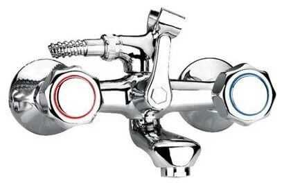 Двохзахватна конструкція з окремими вентилями для холодної та гарячої води дозволяє точно регулювати температуру потоку. Корпус виготовлений із латуні з міцним хромованим покриттям, що забезпечує стійкість до корозії та механічних пошкоджень. Змішувач призначений для настінного монтажу на дві монтажні точки з використанням S-подібних ексцентриків для вирівнювання.