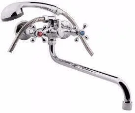 Двозахватний змішувач Potato P2365 для ванни та душу встановлюється на стіну горизонтальним способом. Управління гарячою та холодною водою здійснюється окремими кранами-буксами, а перемикання на душ — за допомогою окремого важіля, вбудованого в корпус.