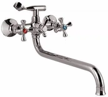 Двохзахватний настінний змішувач для ванної кімнати оснащений довгим поворотним виливом довжиною 380 мм та комплектується душовим набором. Конструкція з горизонтальним монтажем на дві точки та гнучким підведенням забезпечує зручне користування як ванною, так і душовою лійкою.