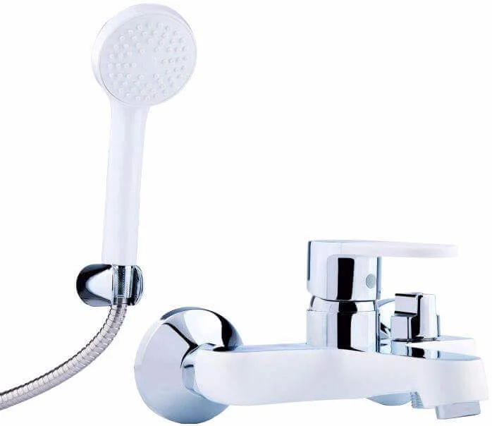 Конструкція включає фіксований вилив довжиною 150 мм та окрему душову лійку на тримачі, що дозволяє швидко перемикатися між режимами наповнення ванни та прийняття душу. Для монтажу в два отвори мийки або борту ванни використовуються S-подібні ексцентрики, які компенсують неточності відстаней.