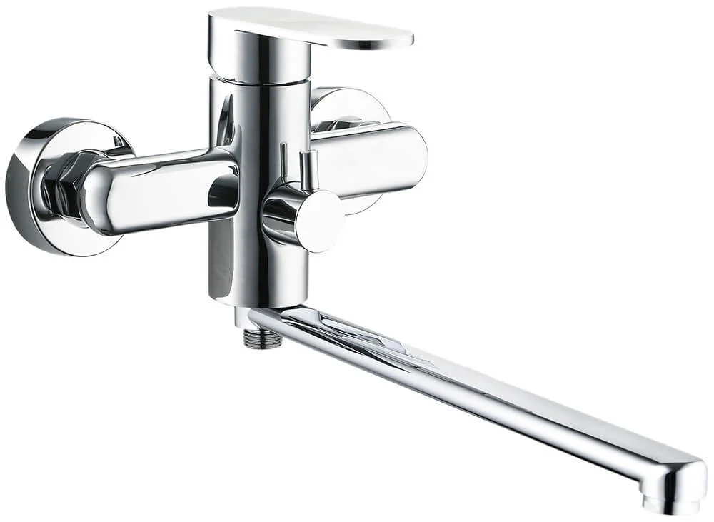 Ця модель призначена для настінного монтажу та оснащена двома монтажними отворами, що забезпечує надійну фіксацію та зручність підключення до водопровідної системи. Однозахватний механізм керування дозволяє легко та точно регулювати температуру та інтенсивність потоку води однією рукою, що підвищує комфорт використання. Вбудований безшумний керамічний картридж Ф35 з підвищеним ресурсом, характерний для сучасних змішувачів, гарантує плавність ходу важеля та тривалий термін служби без протікань.