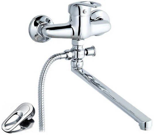 - Повна комплектація: Змішувач постачається з усім необхідним для встановлення та використання, включаючи душовий шланг довжиною 150 см, лійку та настінний кронштейн для її кріплення.