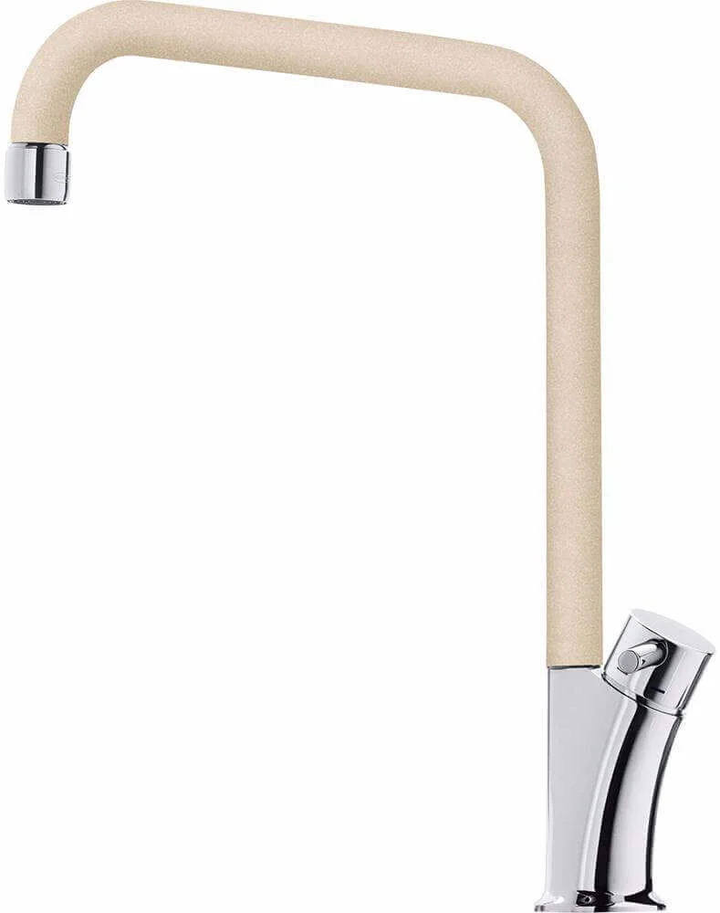 - Естетичний вигляд: Покриття у кольорах хром та бежевий, а також нікель/хром, дозволяє інтегрувати змішувач у різні стилі кухонних інтер'єрів.