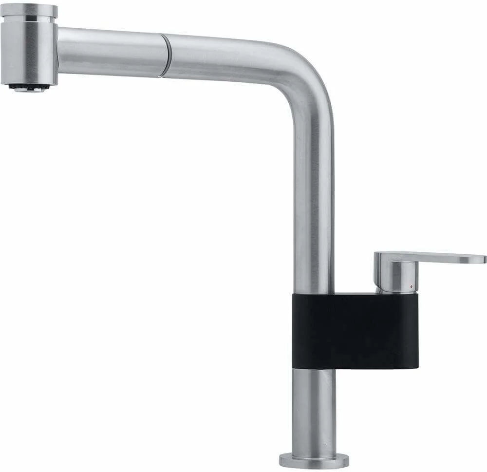 Високий вилив змішувача Franke Grammy забезпечує достатній простір для роботи з габаритним посудом, а легкознімний багаторівневий аератор допомагає оптимізувати витрату води, створюючи м'який, насичений повітрям потік. Висувний шланг розширює радіус дії змішувача, дозволяючи направляти воду в будь-яку точку мийки або за її межі, що особливо зручно для очищення великих поверхонь або наповнення віддалених ємностей.