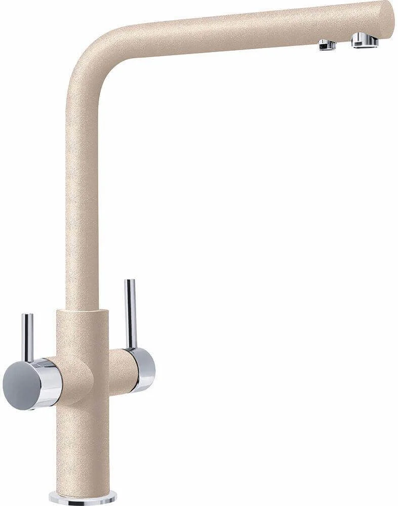 Змішувач Franke Neptune Clear Water 115.0370.710 призначений для одночасного підключення до водопровідної та фільтрованої води, забезпечуючи зручність використання на кухні. Його конструкція передбачає два окремі важелі: один для регулювання подачі холодної та гарячої водопровідної води, інший – для фільтрованої.