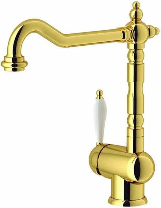 Змішувач для кухонної мийки Franke Old-England 115.0315.597 виконаний у ретро-стилі та оснащений сучасними функціональними елементами. Корпус змішувача виготовлений з латуні, що забезпечує його довговічність та стійкість до корозії, а покриття кольору золота надає виробу елегантного вигляду.