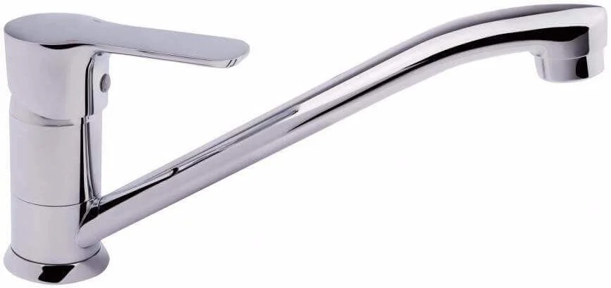 Однозахідний змішувач для кухні монтується на мийку через одне отвір. Основу конструкції складає силуміновий корпус із поворотним виливом висотою 210 мм, що забезпечує зручність під час наповнення глибоких посудин. Робочий механізм представлений керамічним картриджем, який забезпечує плавне регулювання температури та напору води.