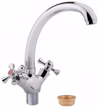 Двохвентильна конструкція з керамічними кран-буксами забезпечує точне регулювання температури та напору води. Корпус виготовлений із силуміну з хромованим покриттям, що забезпечує стійкість до корозії та механічних пошкоджень. Висота моделі становить 255 мм, що разом із високим поворотним виливом довжиною 210 мм значно збільшує робочий простір над мийкою.
