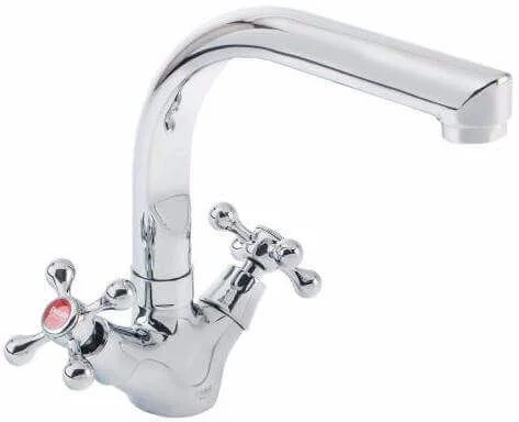 Змішувач Potato P4465 з класичною двохвентильною схемою управління підходить для кухонь, де потрібне традиційне та надійне рішення з окремим регулюванням гарячої та холодної води.