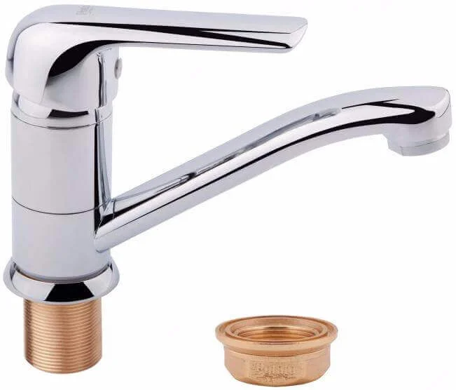 Однозахватний змішувач для монтажу на кухонну мийку має корпус із силуміну з покриттям нікель/хром. Керування температурою та напором води здійснюється за допомогою одного важеля та керамічного картриджа.