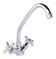 Управління потоком води здійснюється за допомогою керамічного картриджа, який відрізняється плавністю ходу та високою зносостійкістю, запобігаючи протіканням та забезпечуючи безшумну роботу. Глянцеве хромоване покриття не тільки надає змішувачу естетично привабливого вигляду, але й захищає його поверхню від подряпин та полегшує догляд, зберігаючи блиск протягом усього періоду експлуатації. Традиційна форма поворотного виливу забезпечує зручність при митті посуду різного розміру та наповненні ємностей, дозволяючи направляти потік води в потрібну частину мийки.