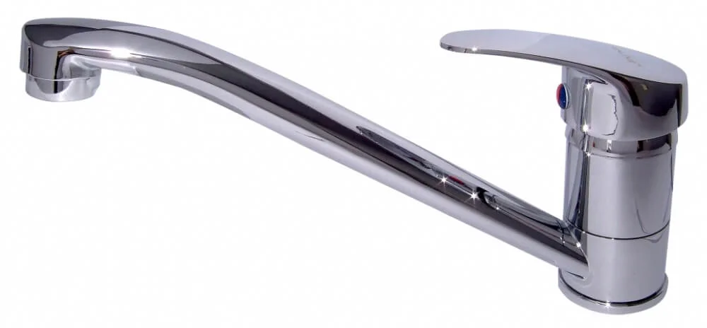Змішувач з хромованим покриттям призначений для вертикального монтажу на мийку через один отвір. Виріб виробляється в Литві та підходить для стандартних кухонних умов експлуатації.