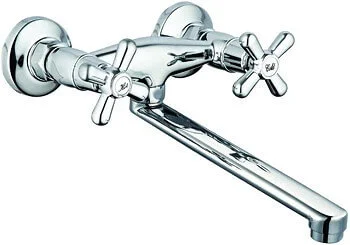 Виготовлений з латуні та покритий хромом, змішувач стійкий до корозії та зберігає естетичний вигляд протягом тривалого часу. Традиційний вилив та наявність аератора забезпечують м'який, рівномірний потік води без розбризкування, що підвищує комфорт використання. Горизонтальний спосіб монтажу та два монтажні отвори спрощують встановлення на стіну.