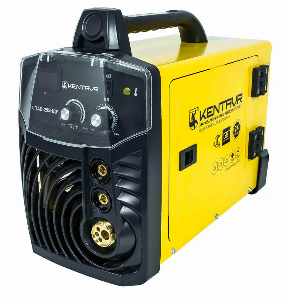 Модель Кентавр СПАВ-295НДР працює від мережі 220 В, забезпечуючи діапазон зварювального струму від 30 до 250 А. Це дозволяє використовувати електроди діаметром до 5.0 мм для режиму MMA та зварювальний дріт діаметром до 1.2 мм для режимів MIG/MAG. Наявність цифрового дисплея спрощує контроль параметрів, а функція модуляції зварювального струму «ARC FORCE» покращує якість дуги.